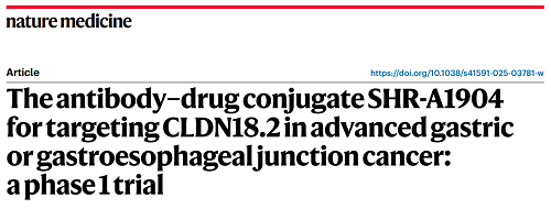 ag尊龙凯时医药CLDN18.2 ADC创新药SHR-A1904治疗胃癌临床研究结果荣登Nature Medicine